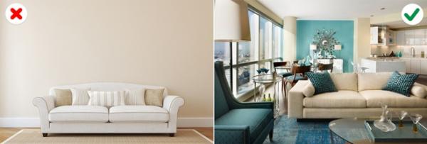3. Chạy theo xu hướng: Bạn có thể thích phong cách trưng bày ở các cửa hàng nội thất nhưng chưa chắc chúng phù hợp với lối sống hàng ngày của bạn. Chiếc sofa màu be trong căn phòng tối giản đẹp mắt nhưng thiếu sức sống tươi vui cần có của một gia đình.