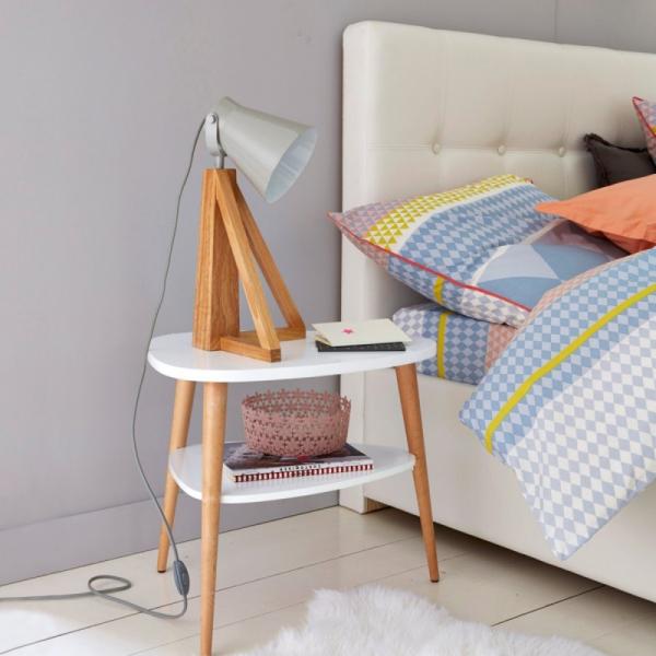 Để trang trí cũng như tăng khả năng lưu trữ cho phòng ngủ, thay vì sử dụng các thiết kế với chức năng của chiếc tap đầu giường hoặc, bạn có thể chọn những chiếc ghế gỗ sơn màu nổi bật để đặt đèn ngủ, sách báo, đồng hồ báo thức, lọ hoa… Trông vừa gọn gàng vừa cá tính đúng không nào? Giá tham khảo: 500.000 đồng/ sản phẩm.