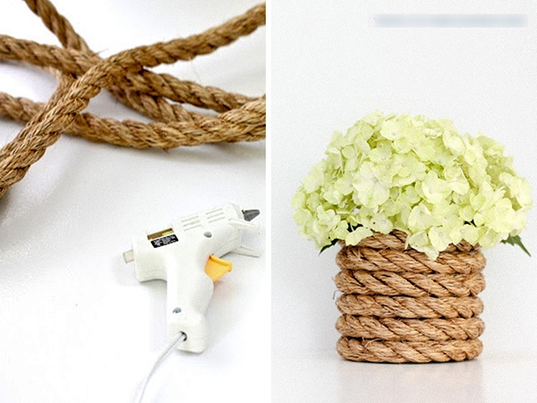 Dùng keo và cuộn dây thừng xung quanh lọ hoa, chiếc lọ hoa bình thường nhất của bạn cũng trở nên đặc biệt đến không ngờ.