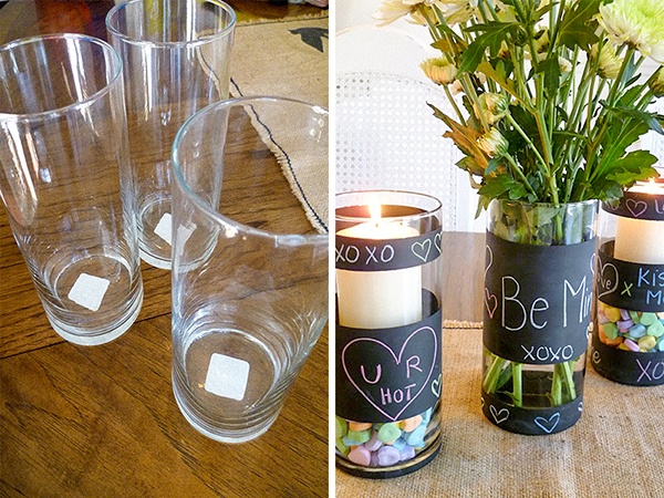 Thay vì những chiếc lọ thủy tinh đã quá nhàm chán, bạn có thể dùng sơn sơn những mảng đen xung quanh lọ và viết chữ màu trang trí lên trên. Để tạo được những đường sơn đen sắc nét, hãy dùng giấy hoặc băng dính để dán kín những vùng còn lại trước khi sơn.