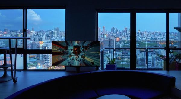 Ngay khi đặt chân vào căn hộ của "fan cuồng" Lego này, bạn có thể thấy bày ra trước mắt bạn là vô số miếng ghép Lego. Phòng khách của căn hộ được thiết kế bắt mắt với bộ bàn ghế sofa hình tròn. Điều đặc biệt, bên dưới chiếc bàn là vô số những quả bóng nhựa nhỏ. Phòng khách cũng được thiết kế với những màu sắc quen thuộc của bộ xếp hình lego như xanh vàng, đỏ. Tivi cũng được dựng bên trong phòng khách trên với bối cảnh bên ngoài cửa kính ấn tượng của căn hộ.