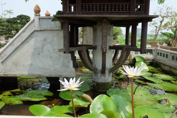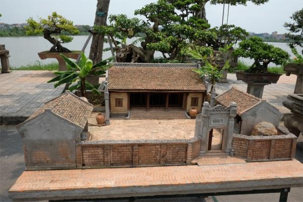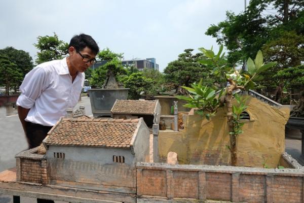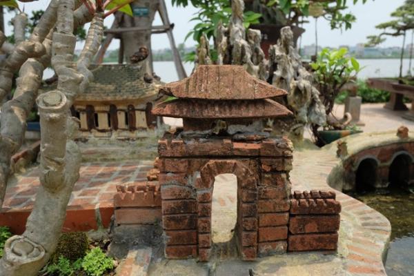 Ngoài sáng tạo cây cảnh bonsai, các nghệ nhân còn dựng những phiên bản nhỏ của những công trình quen thuộc với người dân Việt. Chùa Một Cột của ông Nguyễn Duy Hùng (Hà Nội) được làm giống hình ảnh bên ngoài tới từng chi tiết.