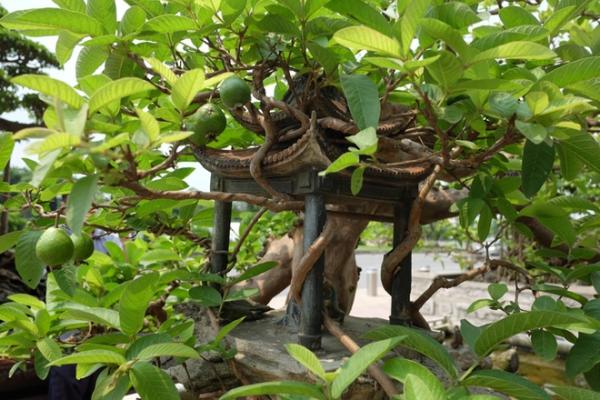 Cây ổi của ông Phùng Anh Lê (Hà Nội) sai quả trĩu trịt có thêm sự sống động với chốn nghỉ chân bên cạnh ao nước trong veo.