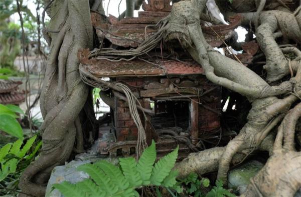Rễ cây bonsai bao trùm các công trình khiến người xem liên tưởng tới những cây cổ thụ khổng lồ ở rừng rậm.