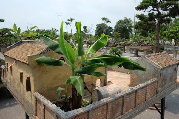 Những ngôi nhà 5 gian, 3 gian của các vùng quê được tái hiện với màu vôi vàng, từng viên ngói nhỏ xíu được lợp tỉ mỉ.