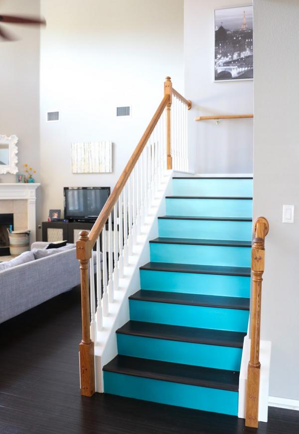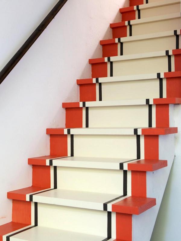 Sở dụng sơn màu để “lột xác” cho những bậc cầu thang cũ hay bị bẩn là một cách làm thông minh.