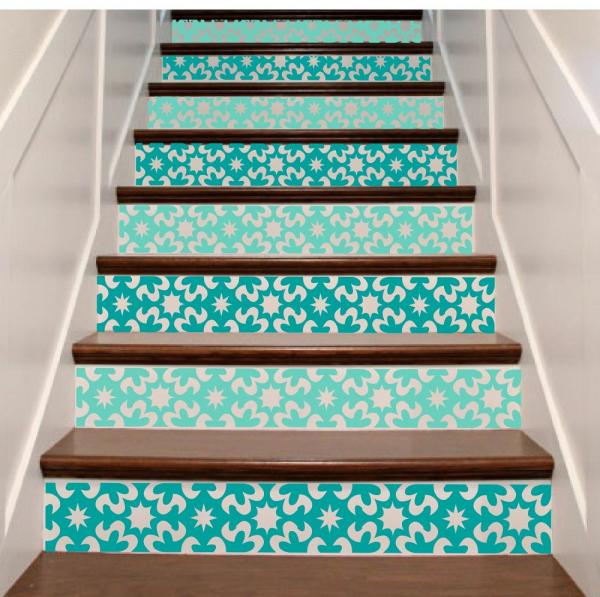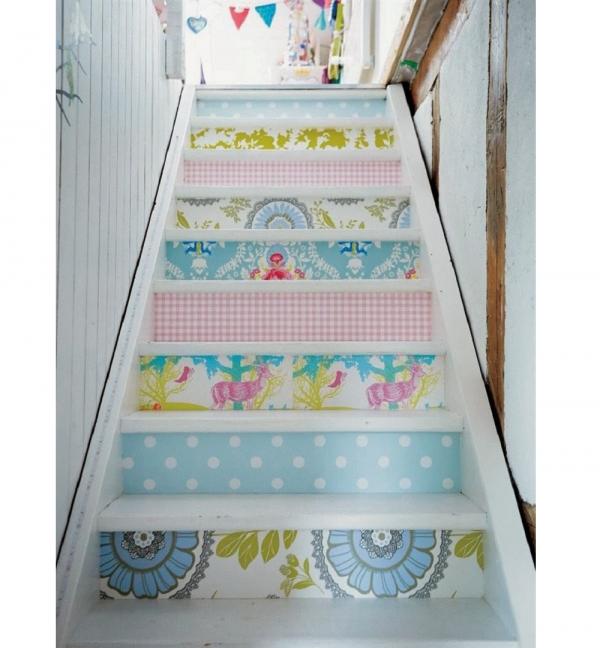 Đẹp, đơn giản và dễ dàng nhất phải kể đến những mẫu giấy và decal nhiều họa tiết và rực rỡ sắc màu để tô điểm cho những bậc cầu thang đơn điệu này.
