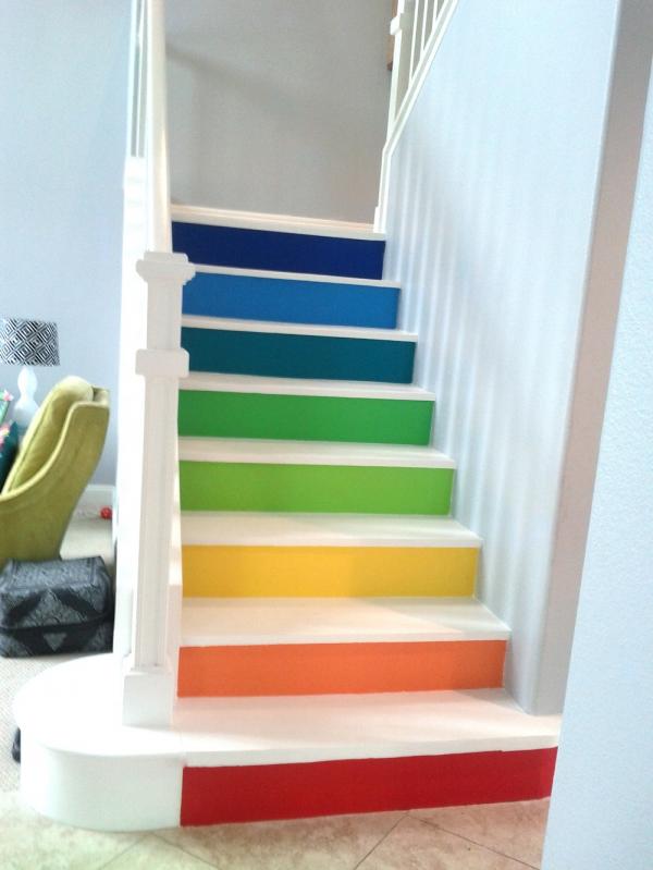 Việc sử dụng khéo léo sắc màu sẽ đem đến gia đình bạn những bậc cầu thang gây thương nhớ như thế này đó!
